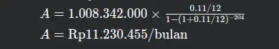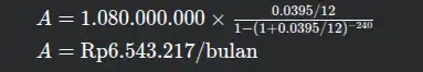 Perhitungan angsuran KPR BCA menggunakan metode anuitas, di mana total cicilan bulanan tetap dengan komposisi bunga dan pokok yang berubah.