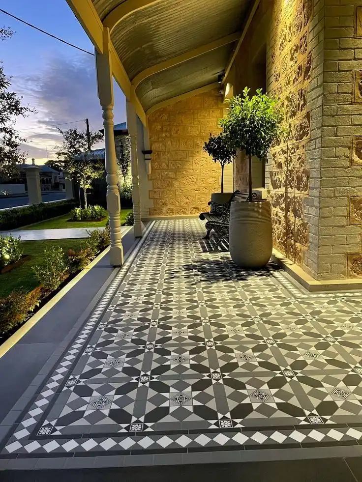 Pola simetris seperti garis, segitiga, atau hexagon cocok untuk rumah bergaya industrial atau kontemporer.